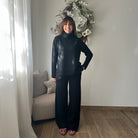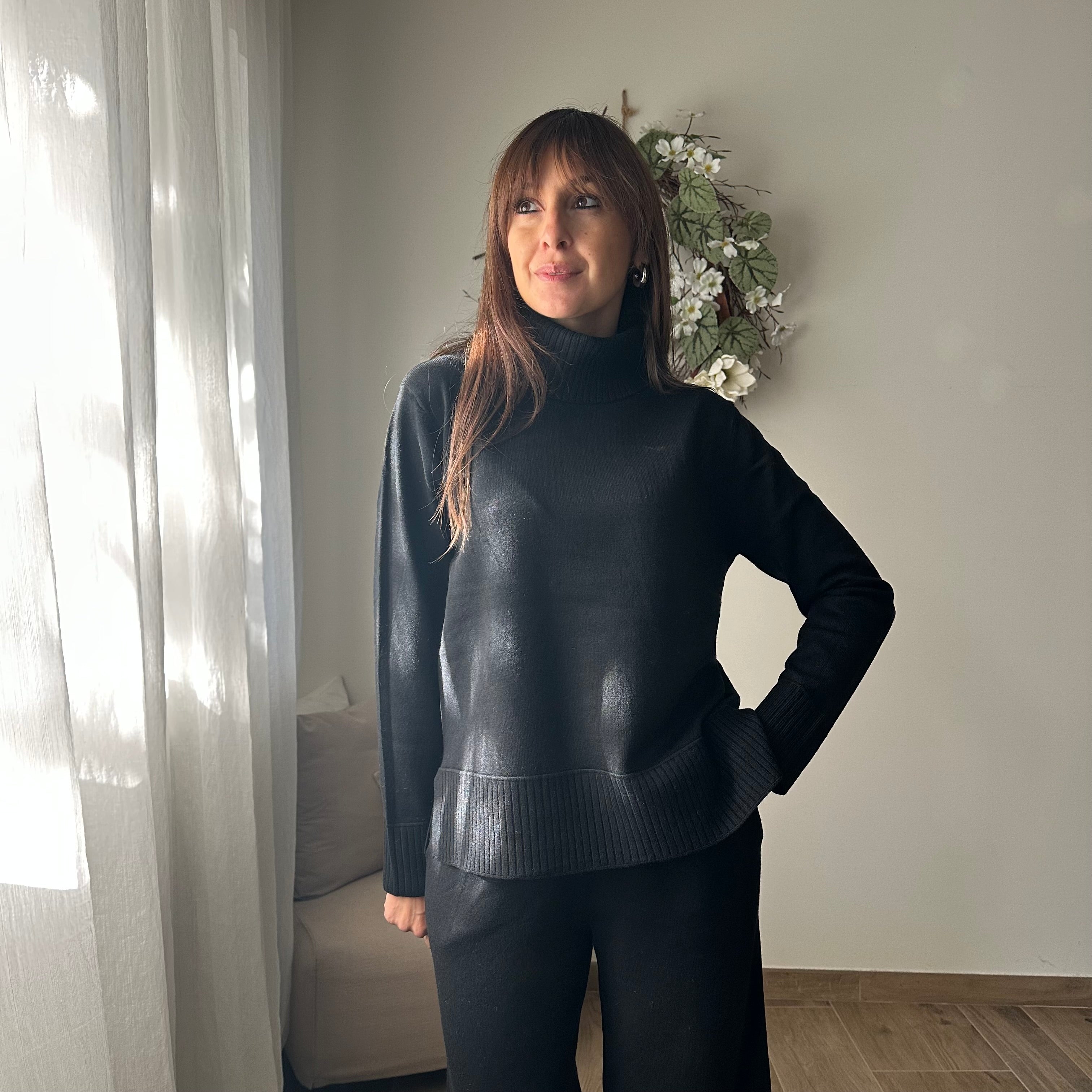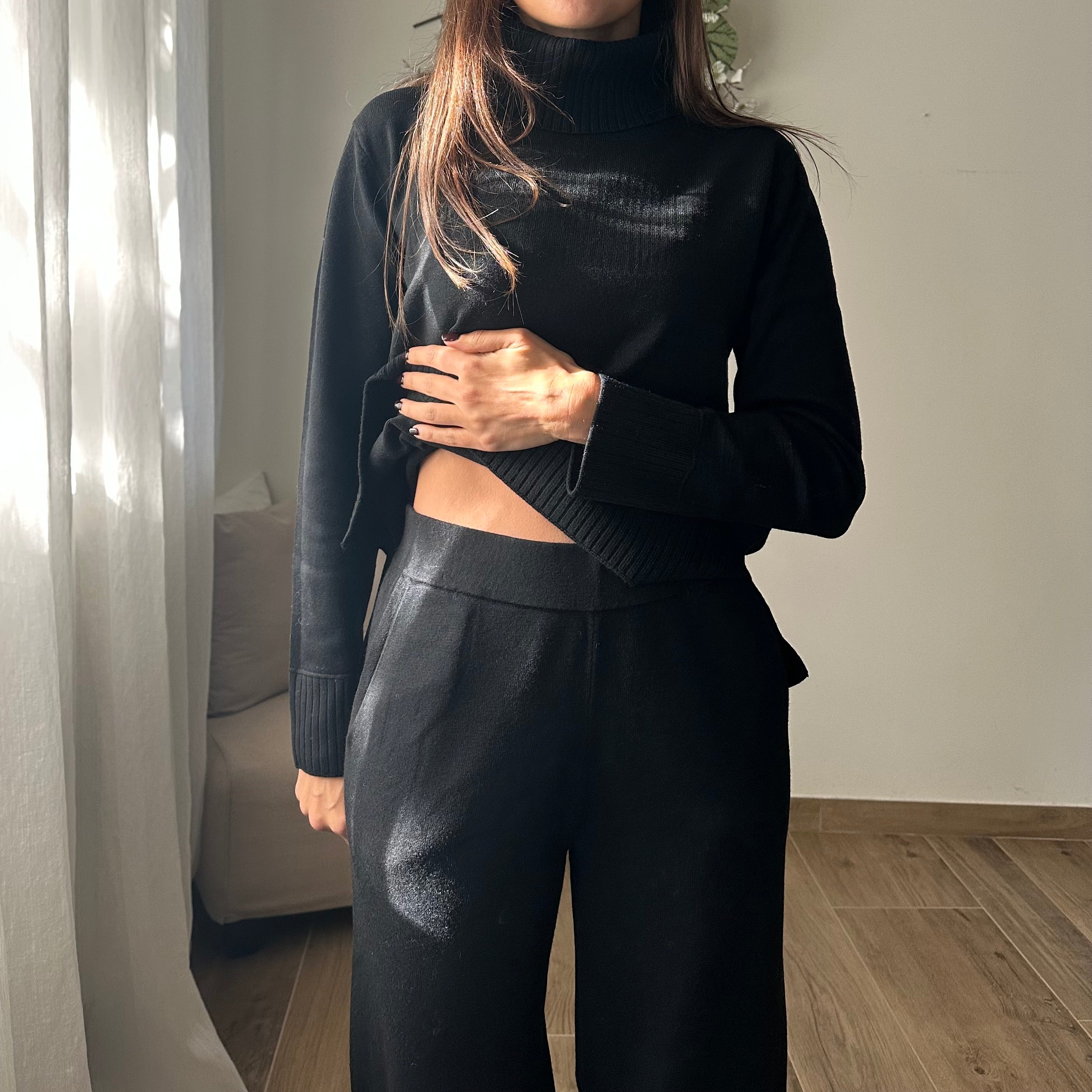 Completo composto da maglione con collo alto e pantalone palazzo con elastico in vita