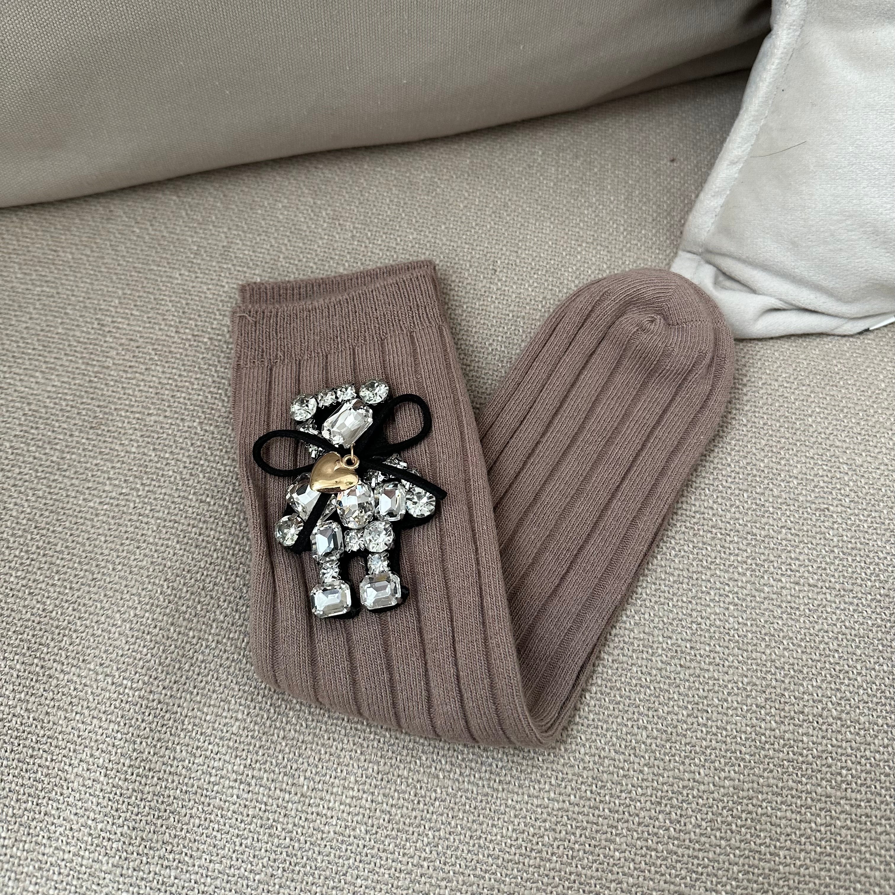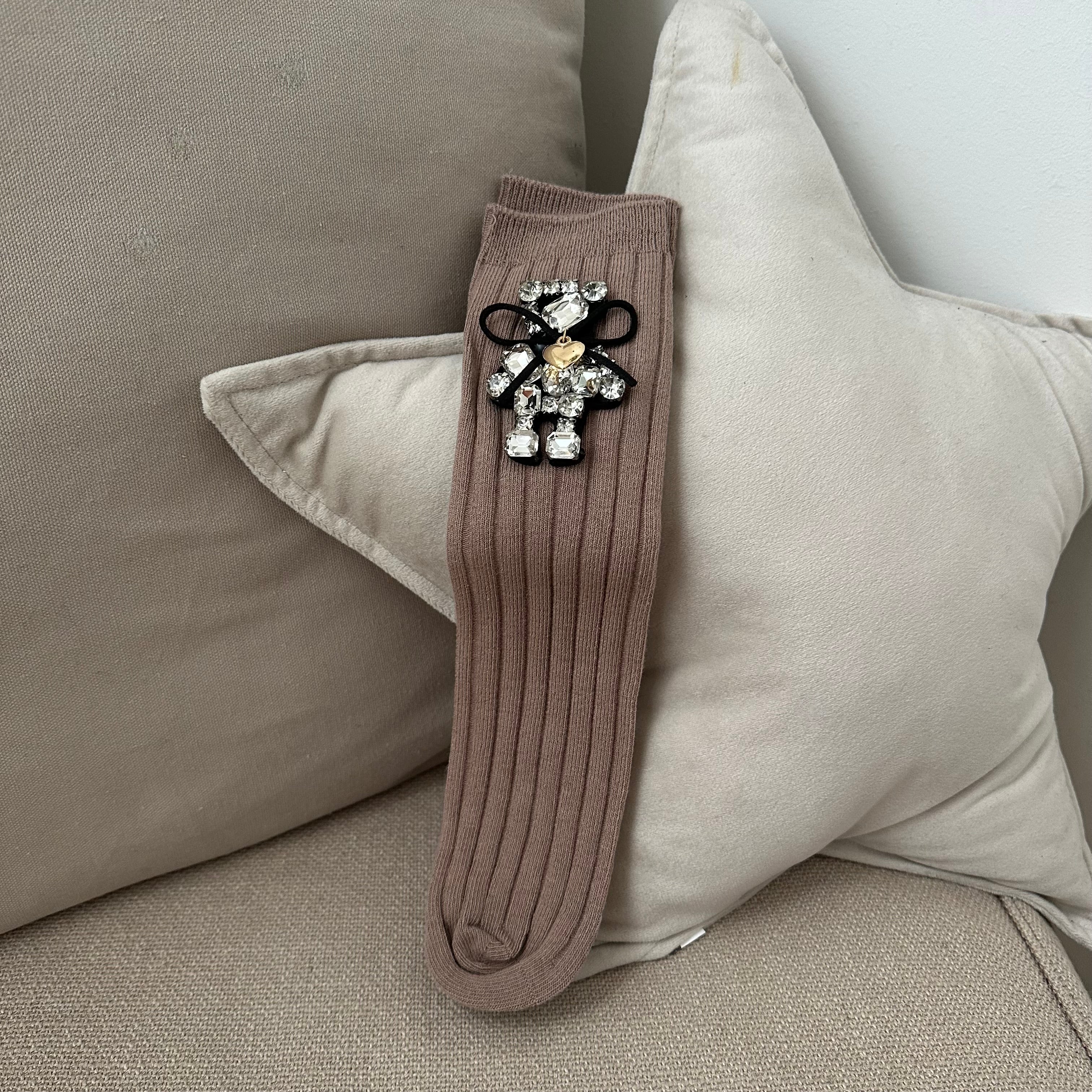 Calzini taupe con dettaglio Teddy Gioiello applicato sul lato