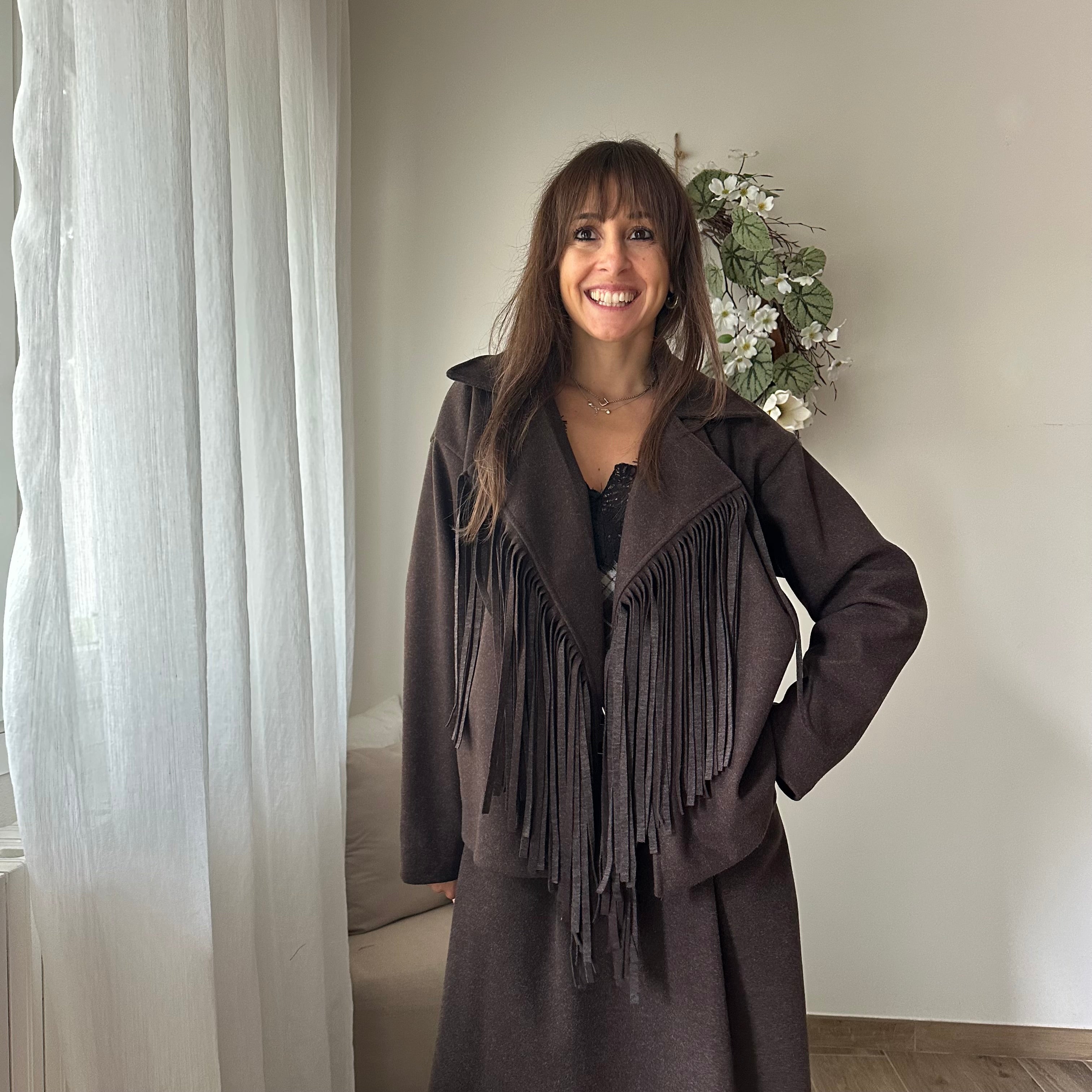 Giacca in panno frange Marrone