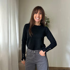 Maglioncino basic girocollo, bottoncini sul polso e spacchettino
