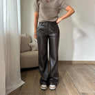 Pantalone in pelle wide lag, foderato internamente, elasticizzato e scende lungo sulla gamba. Passanti per la cintura, chiusura con bottone.