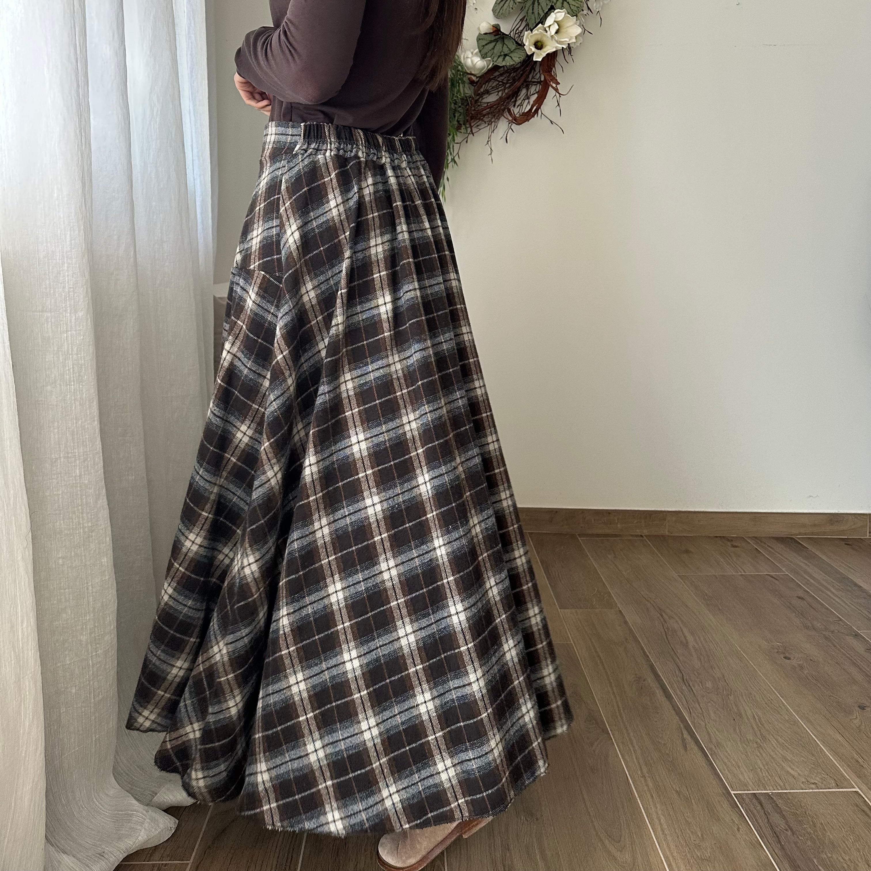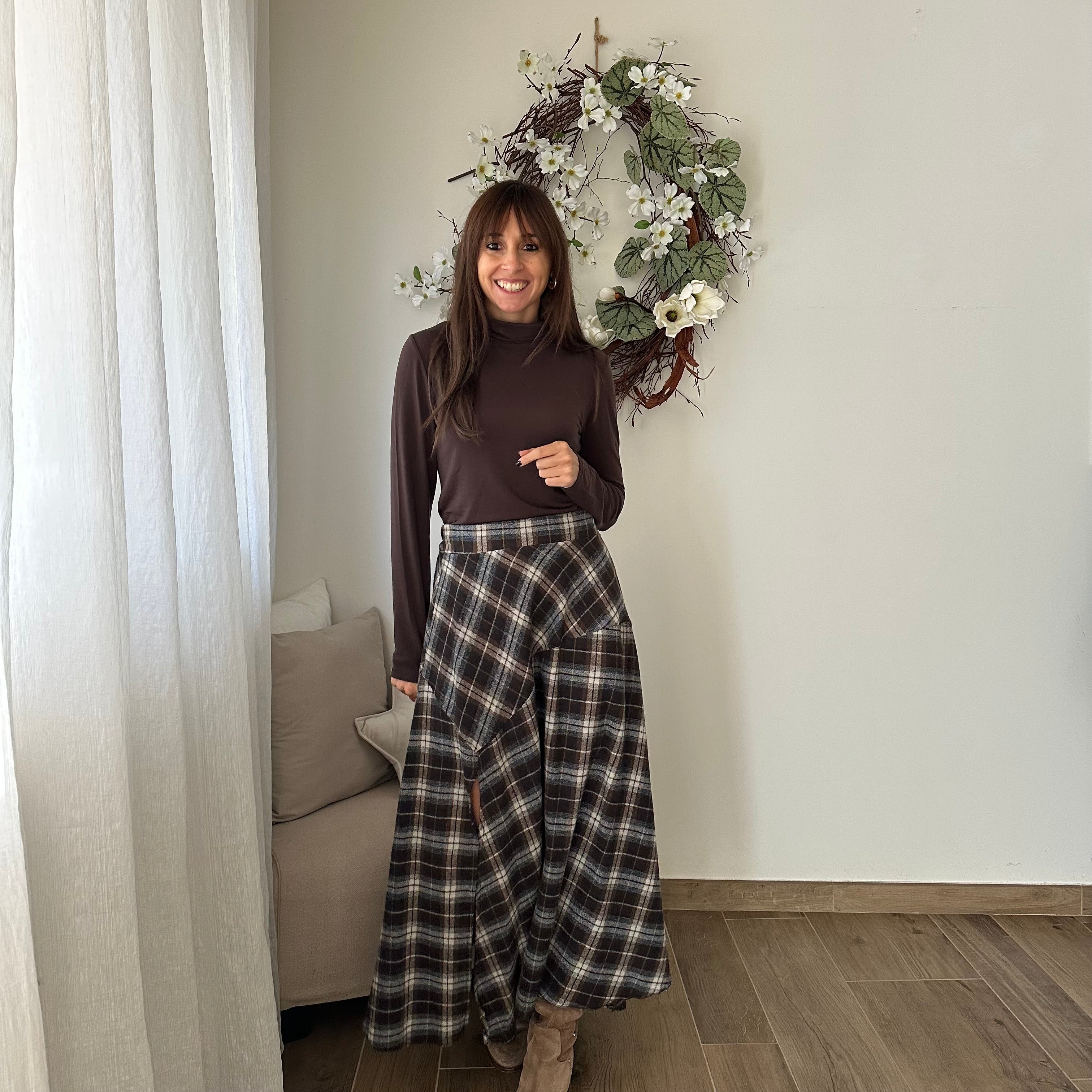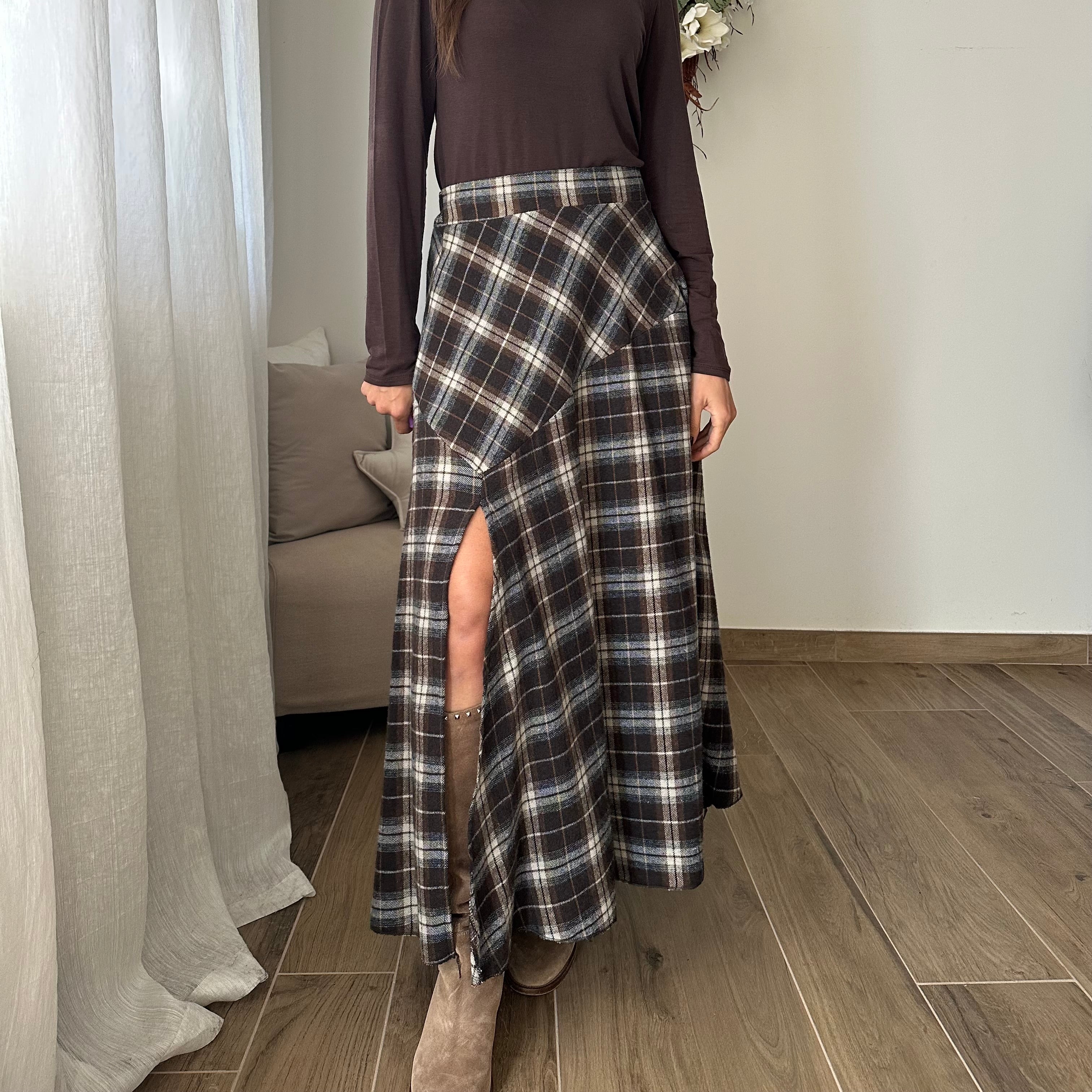 Gonna con spacco, in flanella , cotone caldo. Elastico sul retro