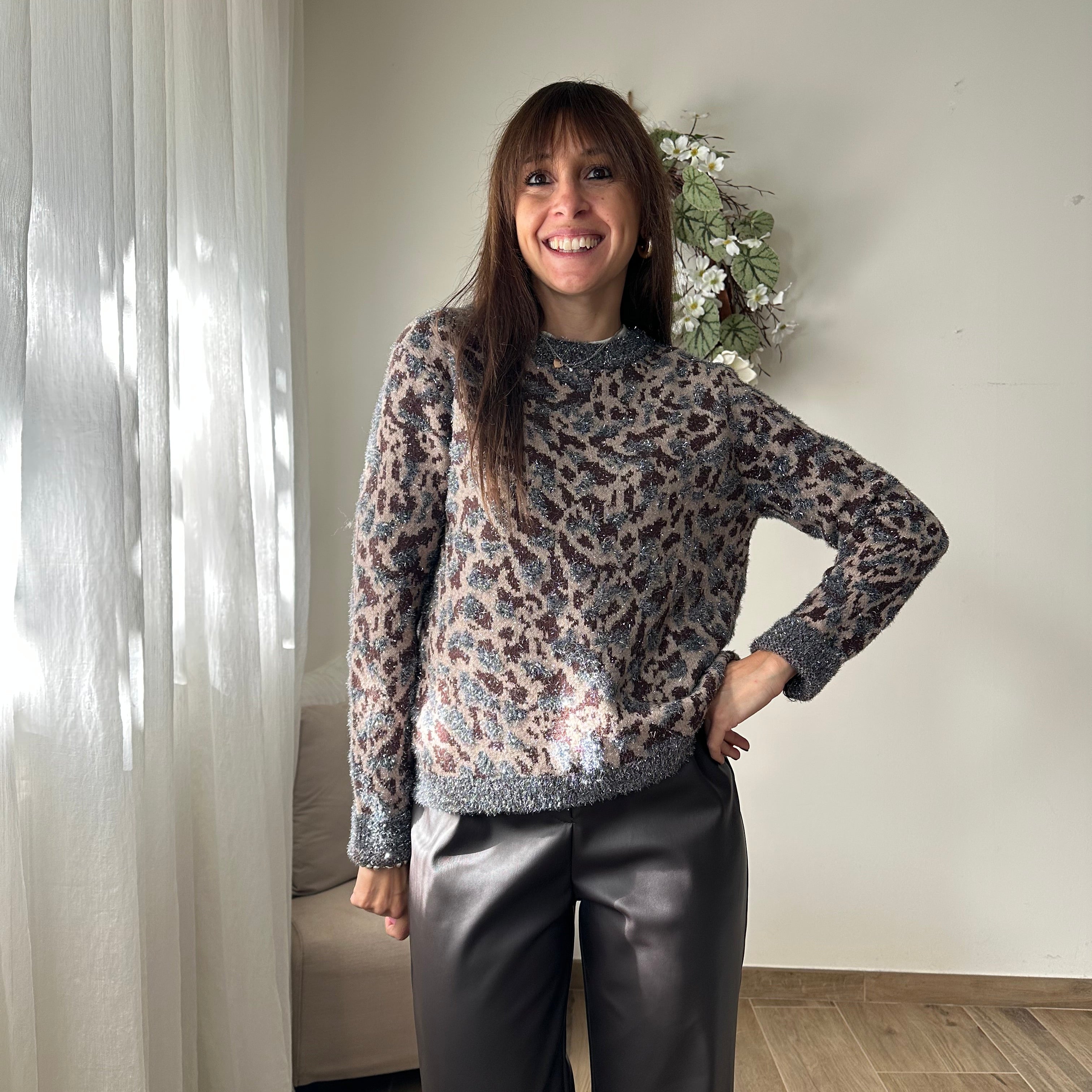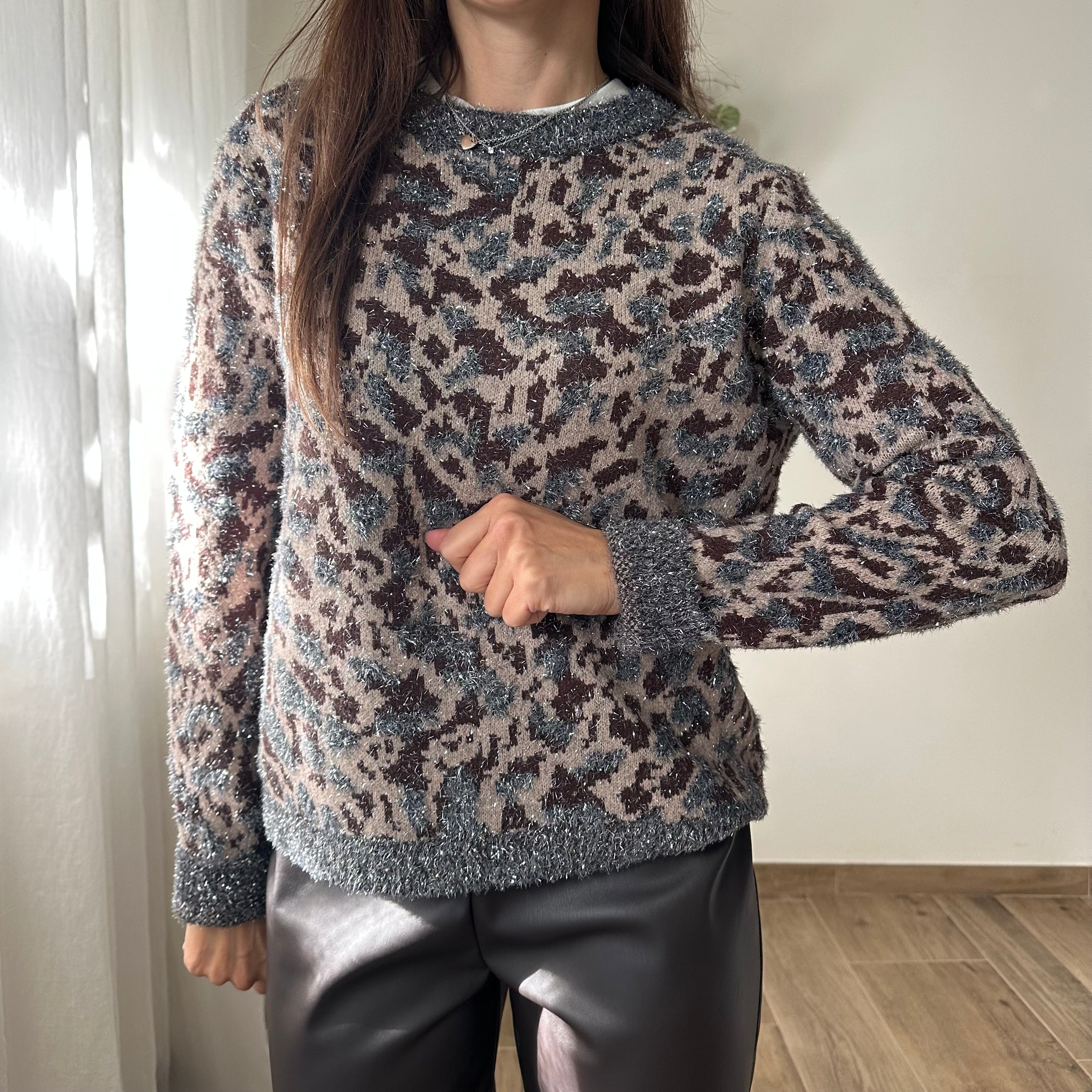 Maglioncino Maculato marrone e argento