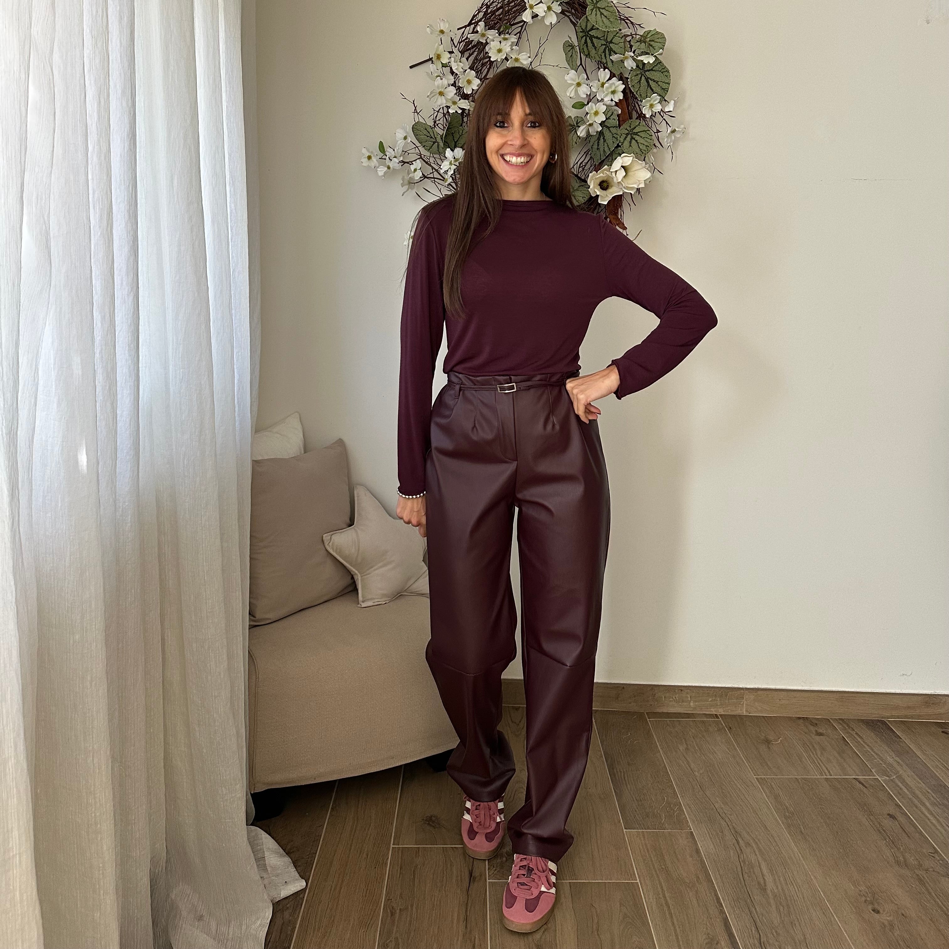 Pantalone Ecopelle Bordeaux