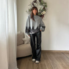 Pantalone in pelle wide lag, foderato internamente, elasticizzato e scende lungo sulla gamba. Passanti per la cintura, chiusura con bottone.