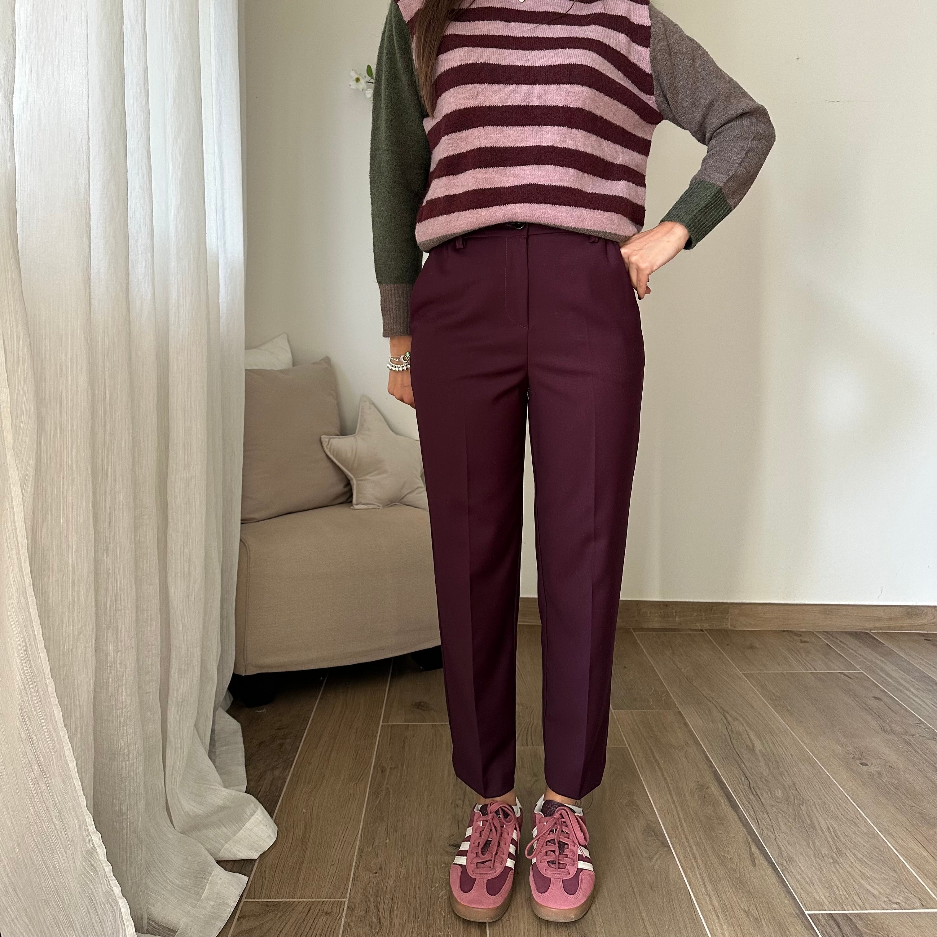 Pantalone gamba dritta, con bottone di chiusura, elastico sul lato.