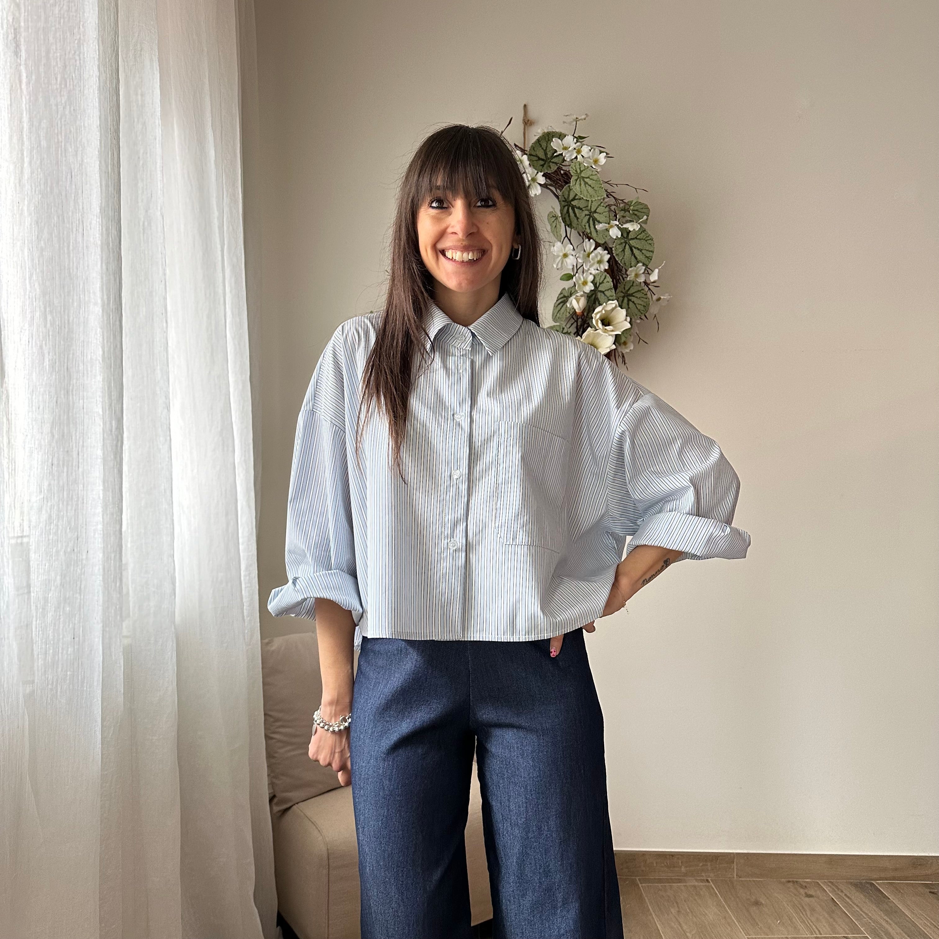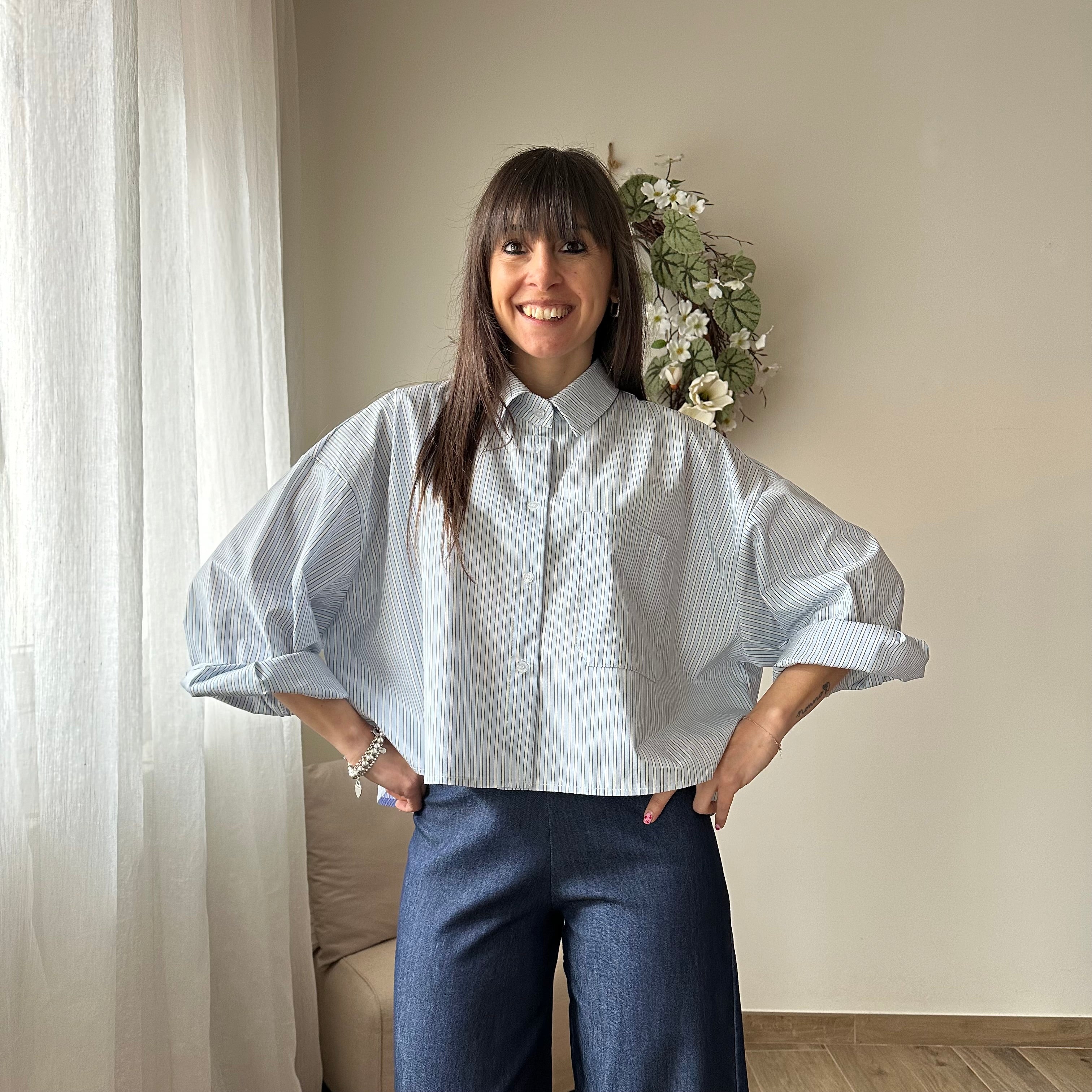 Camicia a righe blu crop