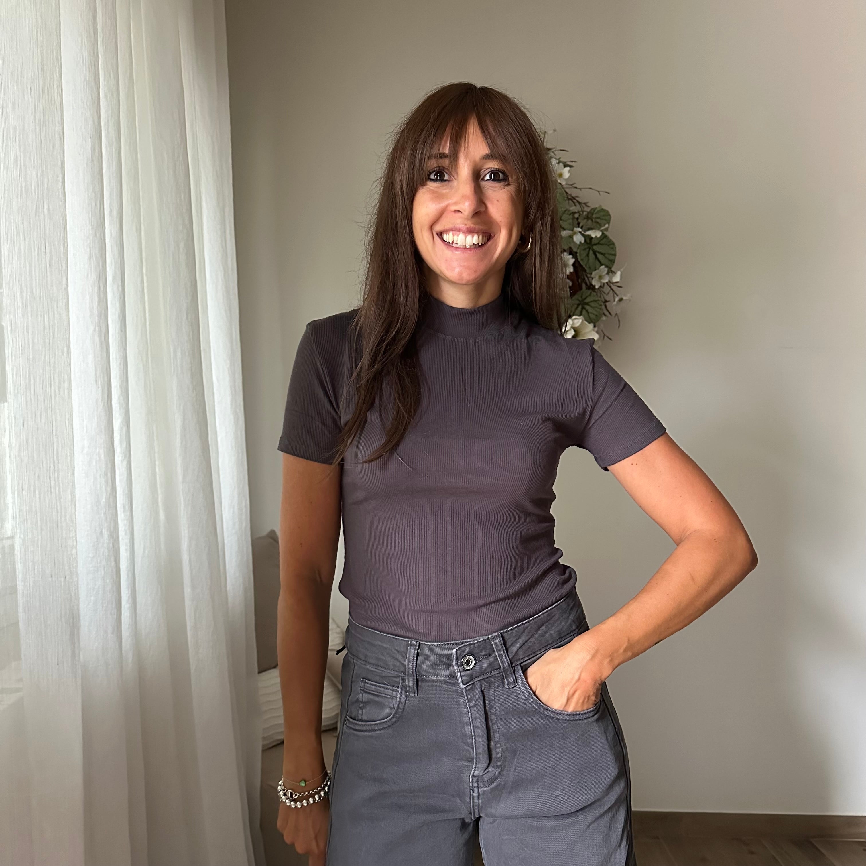 T-shirt manica corta, collo leggermente alto, elasticizzata. veste aderente